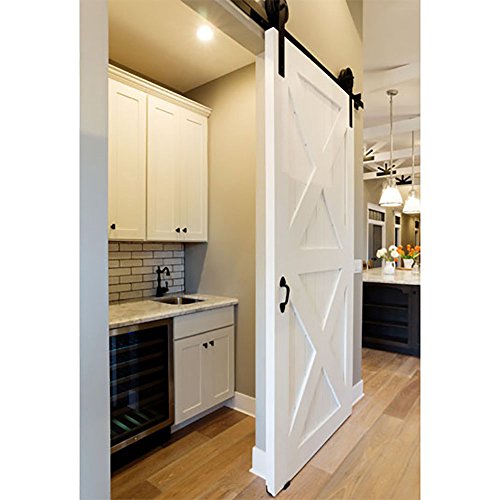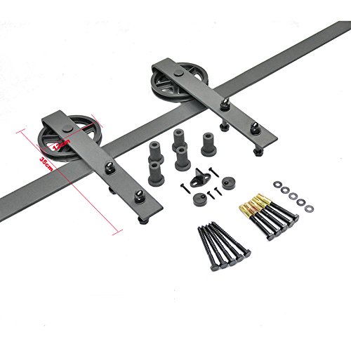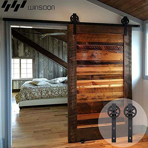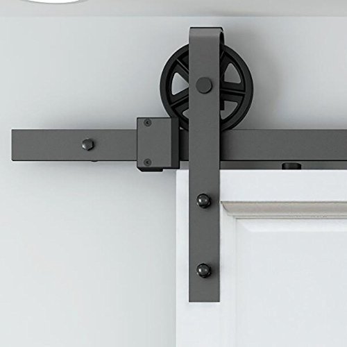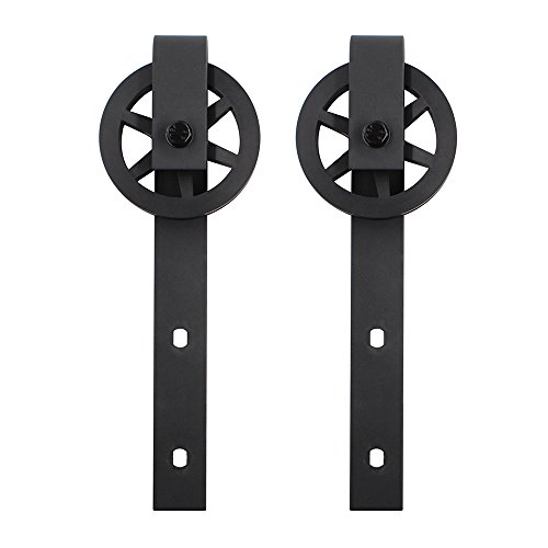WINSOON Single Wood Sliding Barn Door Hardware Basic Black Big Spoke Wheel Roller Kit Garage Closet Carbon Steel Flat Track System (10FT)