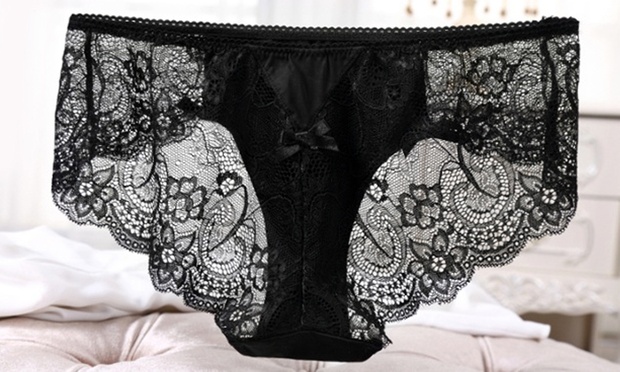 Design 5 : Set of 5 Ribbon Lace Panties Black