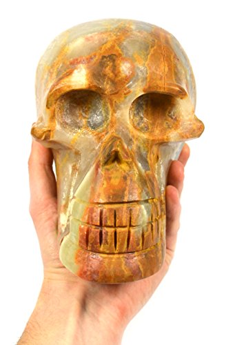 Forest Green Stone Crystal Skull, 7" Long (8.1lbs), Carved from Real North American Calcite - The Artisan Mined Series by hBAR