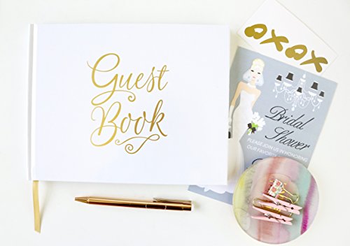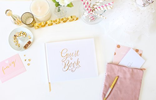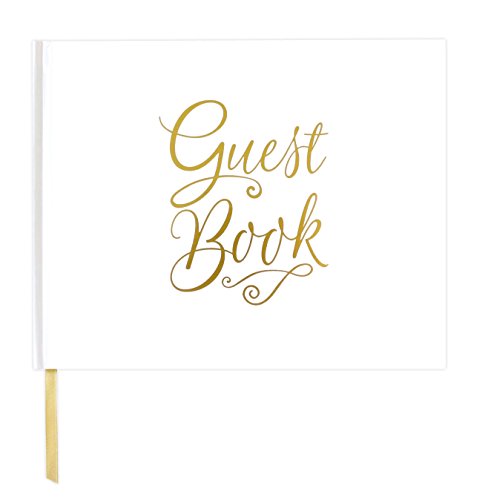 bloom daily planners Wedding Guest Book (120 pages) Guest Sign-In Book Guest Registry Guestbook - White Cover with Gold Foil, Gilded Edges and Gold Page Marker Hardbound 7" x 9"