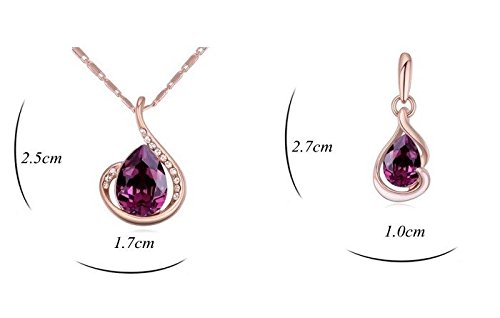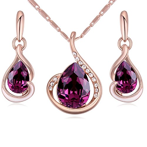 -. Binding : Jewelry -. Brand : Crystalline Azuria -. ClothingSize : All -. Color : Purple -. Department : womens -. Feature : Comes presented in a beautiful gift box with certificate of authenticity of the Crystals from Swarovski®, perfect for gifting or personal keeping. Beautiful and modern design suitable for ladies of any age who like the luxury. / Size: see detail photo. Length of the chain of the necklace 40cm+5cm. / Swarovski color: Purple Amethyst / Crystals from Swarovski® and Swarovski® are not the same. Swarovski® denotes products produced directly and under guidance by Swarovski. Crystals from Swarovski® are crystals produced from Swarovski® but used by various designers for manufactured jewelries in independent workshops. -. Label : Crystalline -. Manufacturer : Crystalline -. ProductGroup : Jewelry -. ProductTypeName : FASHIONOTHER -. Publisher : Crystalline -. Size : All -. Studio : Crystalline -. Title : Teardrops Crystals from Swarovski Purple Simulated Amethyst Set Pendant Necklace 18" Earrings 18 ct Rose Gold Plated