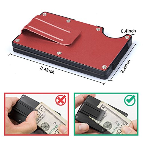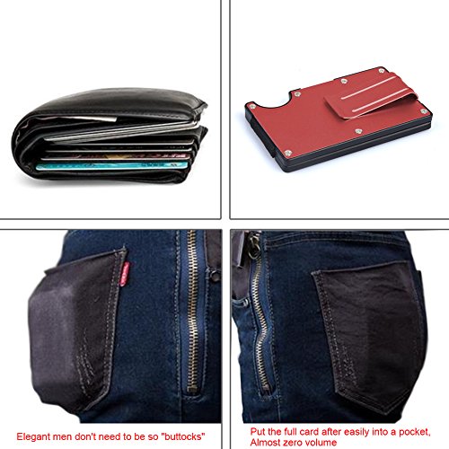RFID Blocking Technology, prevent unauthorized access to personal information, such as credit cards, debit cards, driver licenses, banking information, smart cards, RFID driver's licenses and other RFID cards. Easy to -use design makes money clip very convenient, simply insert the credit card or ID card into from Y shape mouth, and easily pull out from the C shape mouth. The flexible elastic webbing can maximum improve cards capability with no falling out, no breaking, and no bending. Our aluminum wallet money clip is lightweight, and designed to fit into the pockets of dress pants, jeans or shorts, the guys takes it from work to play. Our card holder money clip will NOT damage credit card strips or chips, so there is no stress! Specification: Material: ABS plastic aviation aluminum Color: black Product size: 3.4 * 2.2 * 0.4 inches Product weight: 45g Package includes: 1pc card holder case