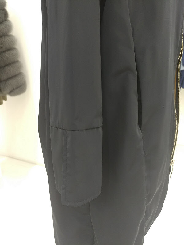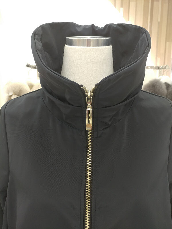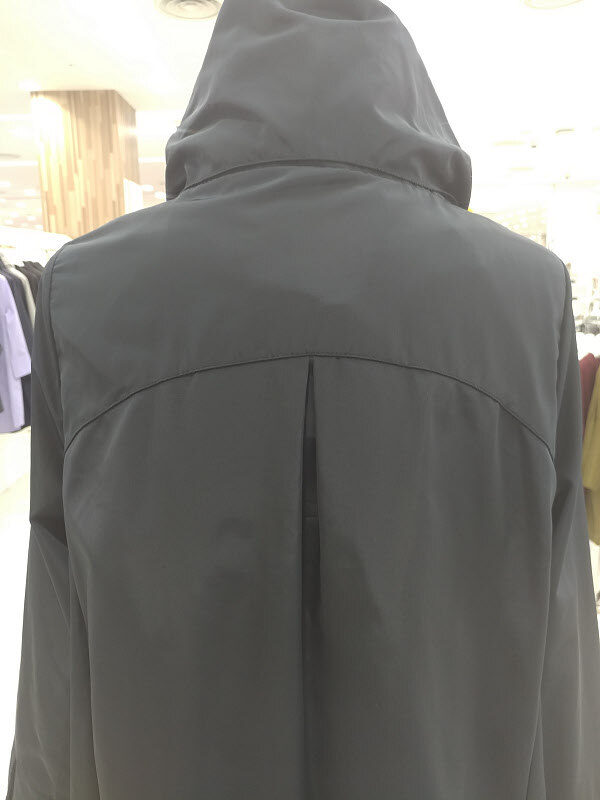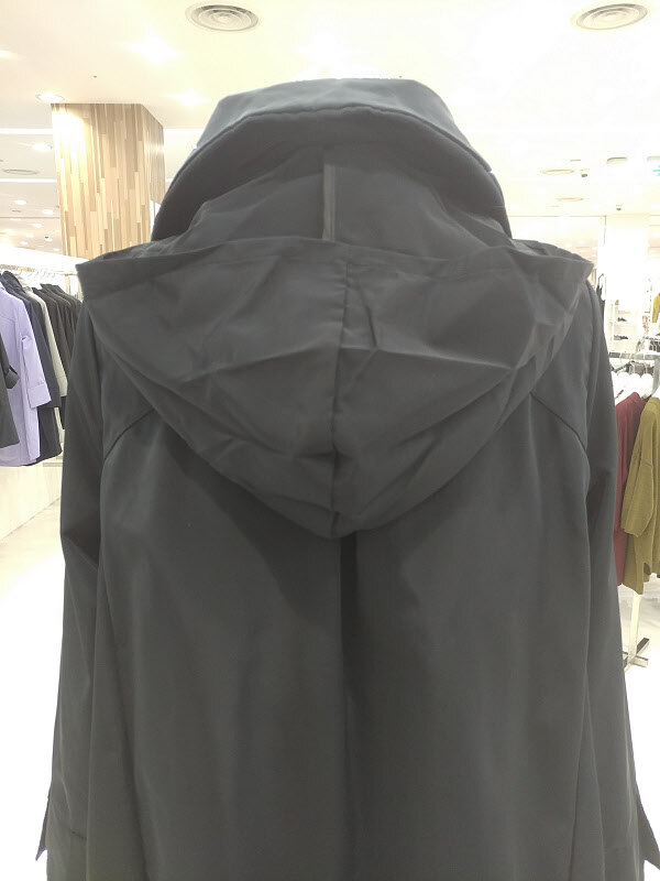 하이넥속에 있는 같은 원단의 후드처리가 더욱 유니크하면서도 멋스러운 디테일을 자랑합니다