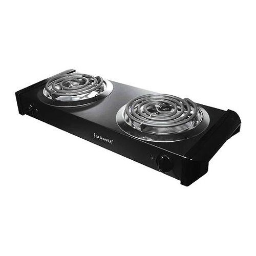 Continental Electric Double Burner 1500 Watts. This burner includes self-cleaning elements, adjustable temperature control, cool-touch end panels and a chrome drip pan.