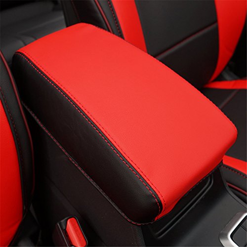 Kust fsx4004w Car Armrest Box Cover Saver(Pack of 1 Piece Fibers Leather Black-red Wire Cover Fit for Armrest Box Size)