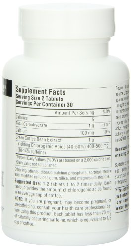 Product Description Derived from raw, unroasted coffee beans;Has been shown in research to support normal cellular regeneration and growth;Each tablet contains the same amount of polyphenols and cholorogenic acids found in an average cup of coffee 0