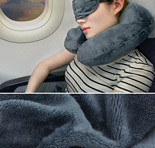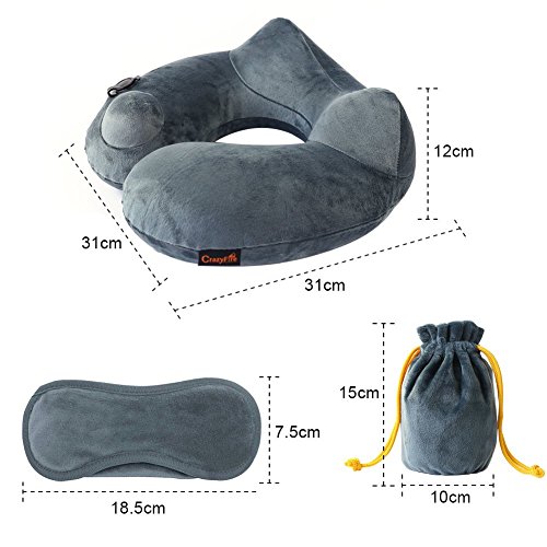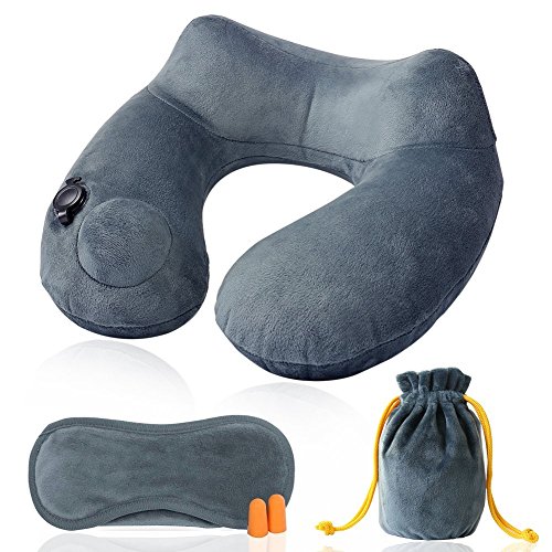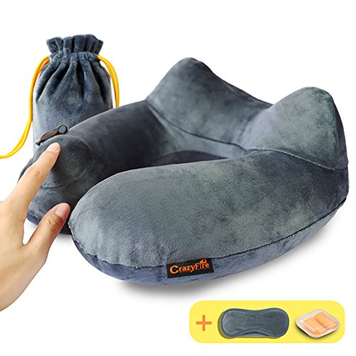 Inflatable Travel Pillow,CrazyFire U Shaped Inflatable Neck Cervical Head Pillow,Soft Compact Lightweight Travel Air Pillows+Soft Carrying Bag+Eye Mask+Ear Plug for Sleeping on Airplane,Car,Train