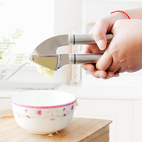 Jeanzer 304 Stainless Steel Garlic Press Crusher for Kitchen, Heavy Duty