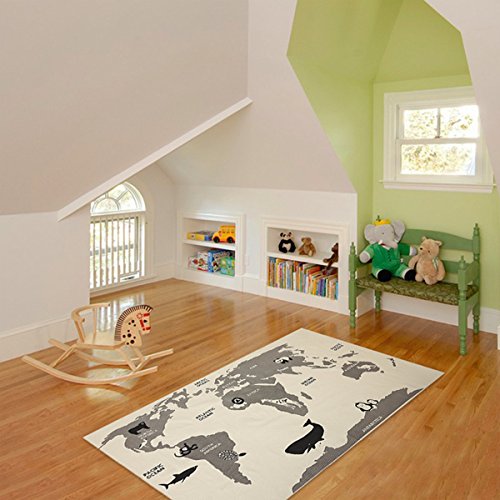 -. Title : Jeteven Canvas World Map Kids Rug Child Play Mat Baby Nursery Crawling Carpet Hanging Tapestry Home Decor 90x140cm/35x55in