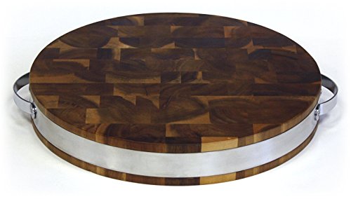 Mountain Woods 15" X 2" Extra Thick Acacia Hardwood End Grain Round Cutting Board w/ Stainless Steel Band