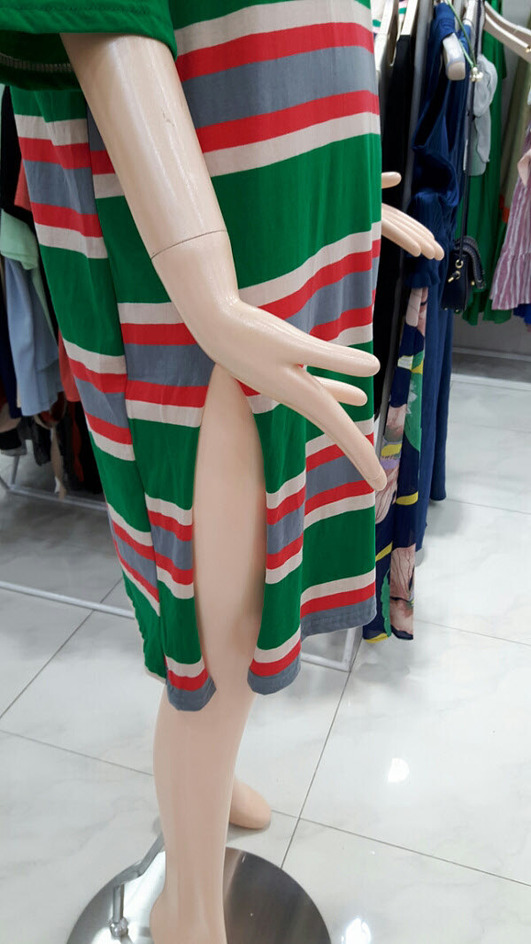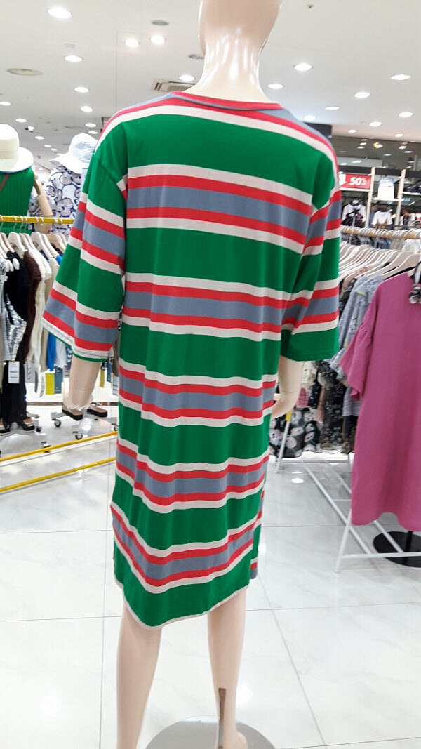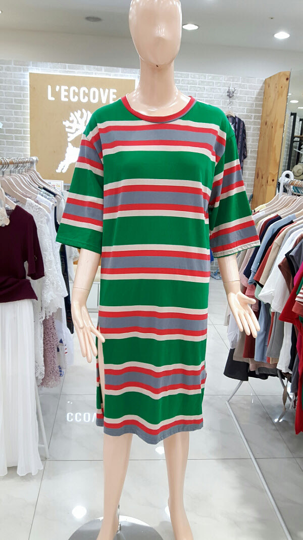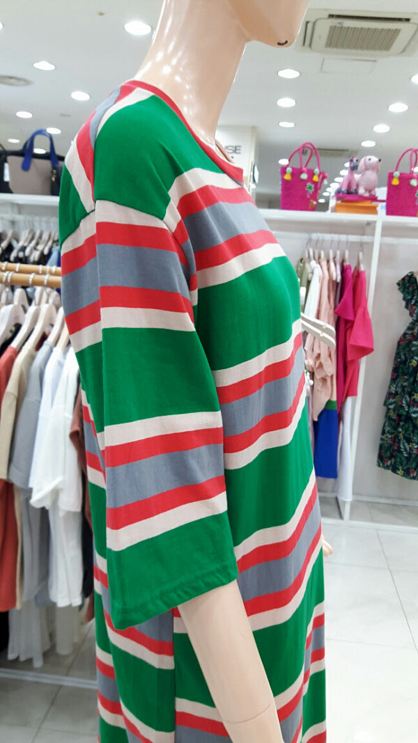 단가라 롱터임 원피스입니다경쾌한 가로 스트라이프로 여름에도 시원하게 입으실수있으며 터임이있어 핫팬츠나 레깅스로 연출하실수 있습니다