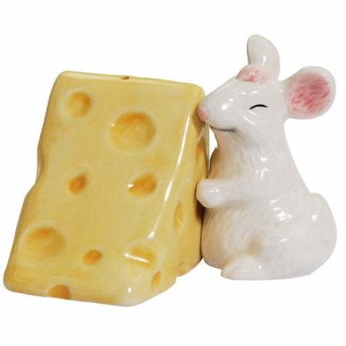 2.75 Inch Mouse Hugging Cheese Decorated Salt and Pepper Shakers