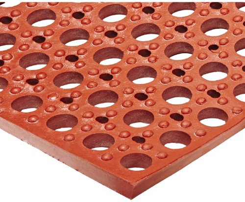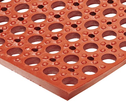 NoTrax T11 Heavy Duty Nitrile Rubber San-Eze II Safety/Anti-Fatigue Mat, for Wet or Greasy Areas, 39" Width x 39" Length x 7/8" Thickness, Red