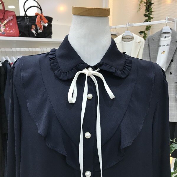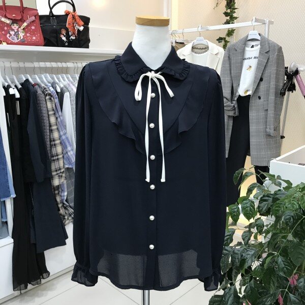 러플 배색 끈 장식 블라우스입니다여성스러우면서 고급스러운 러플 포인트 블라우스입니다끈 장식은 탈부착 가능하며 어디에나 어울리는 기본 디자인의 블라우스라 활용도가 높답니다스커트, 슬렉스 어디에나 코디가 쉽답니다사이즈 55 기준가슴둘레 82cm신장 160cm총장 58cm