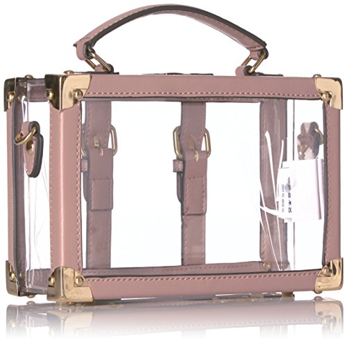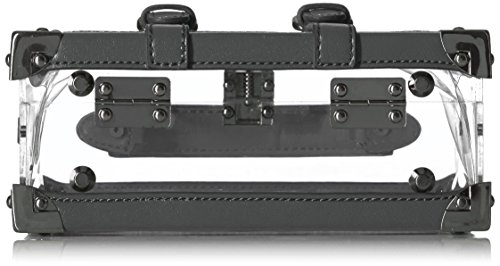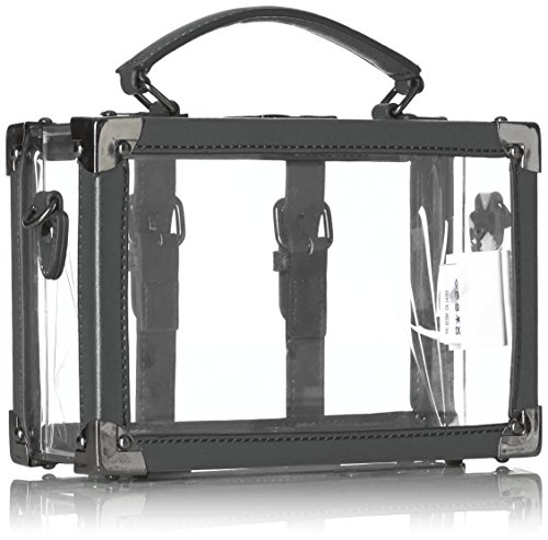 Product DescriptionStructured clear box clutch with pu buckle and luggage tag detail.0
