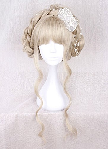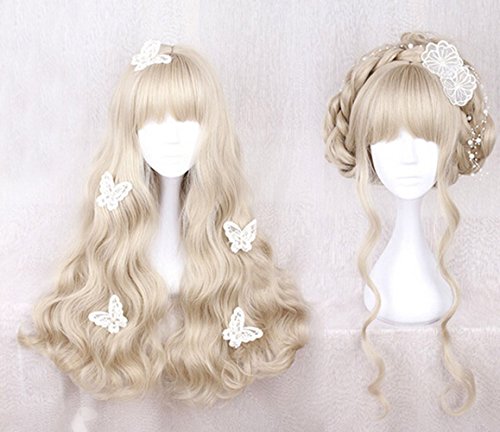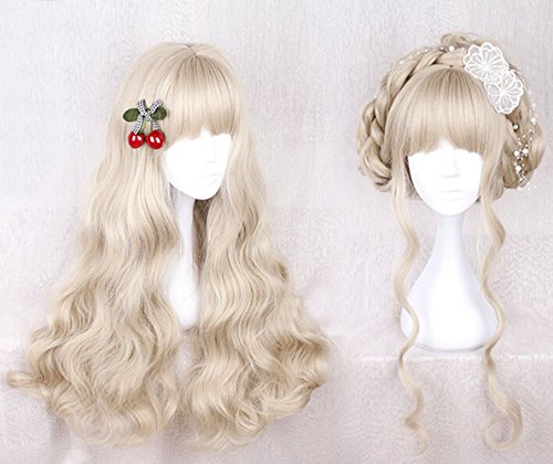 Women Gals Japan Harajuku Sweet Lolita Natural Looking Daily Wear Fluffy Blonde Long Curly Kanekalon Full Wig Cosplay
