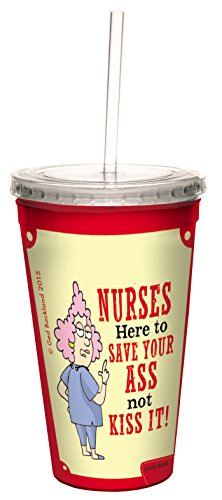 Nurses Save Aunty Acid 16-Ounce Double-Walled Cool Travel Cup with Reusable Straw (CC98431) - Gifts for Nurse Appreciation Week - Tree-Free Greetings