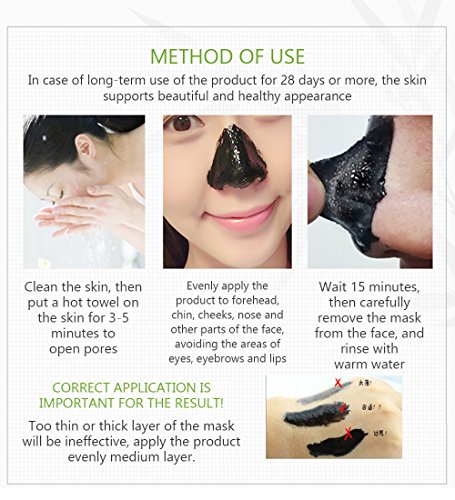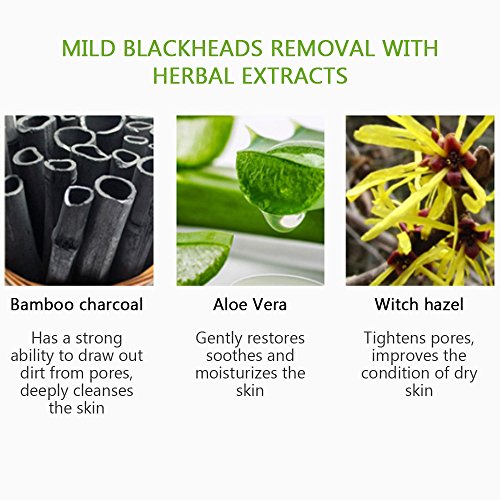 Main ingredients: Aloe Barbadensis, the North American witch hazel, bamboo charcoal Shelf life: 3 years Suitable for skin: all skin types Product efficacy: cleanses the skin of blackheads and comedones Product features: reduces the appearance of dry skin, makes the skin moist and smooth Mild blackheads removal with herbal extracts Bamboo charcoal Has a strong ability to draw out dirt from pores, deeply cleanses the skin Aloe Vera Gently restores soothes and moisturizes the skin Witch hazel Tightens pores, improves the condition of dry skin Say goodbye to worry about the blackheads! Moisturizing Deep cleansing Blackheads removal