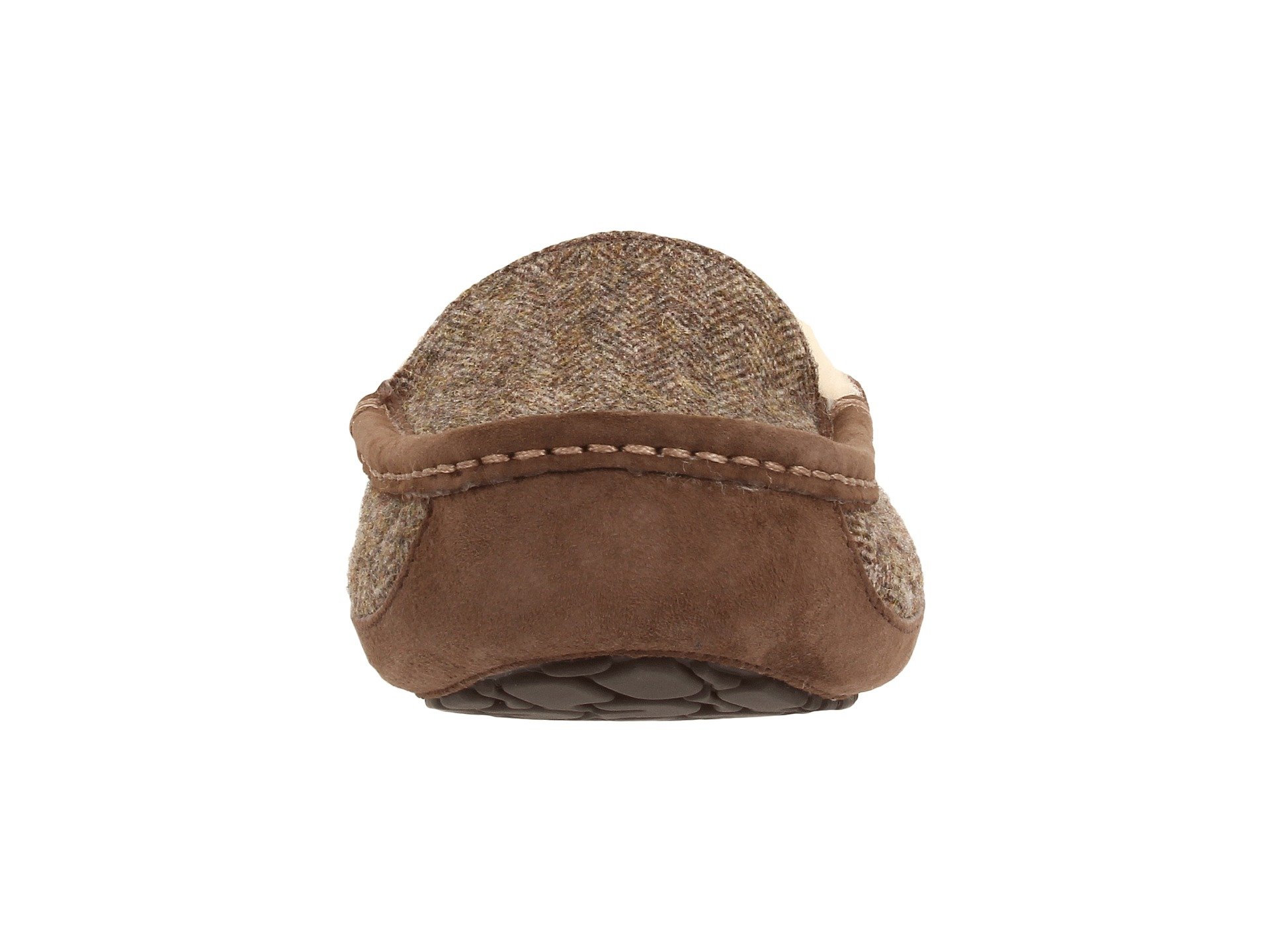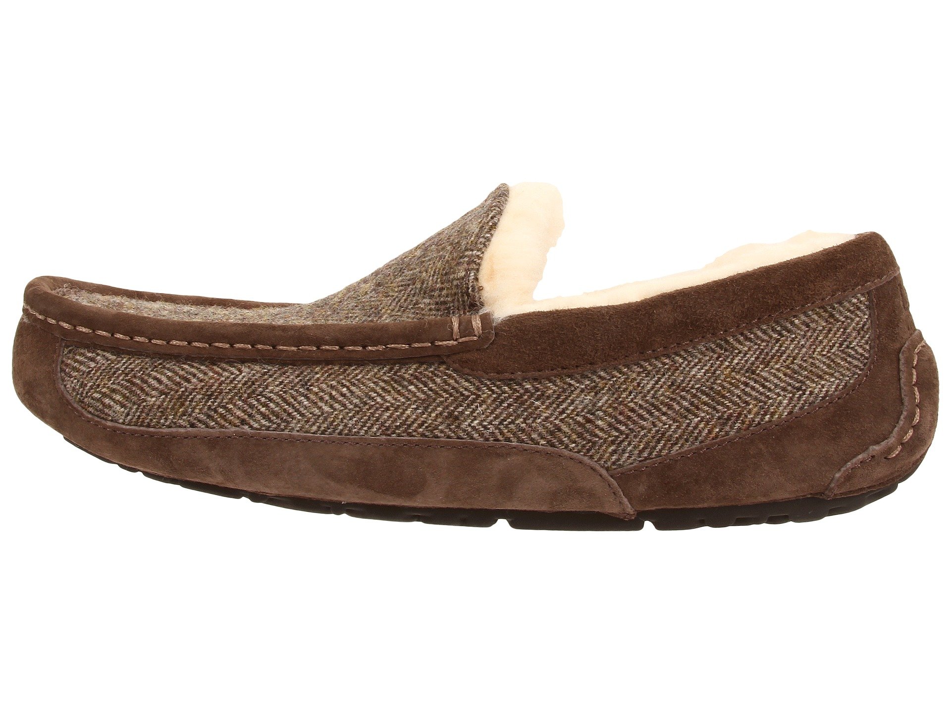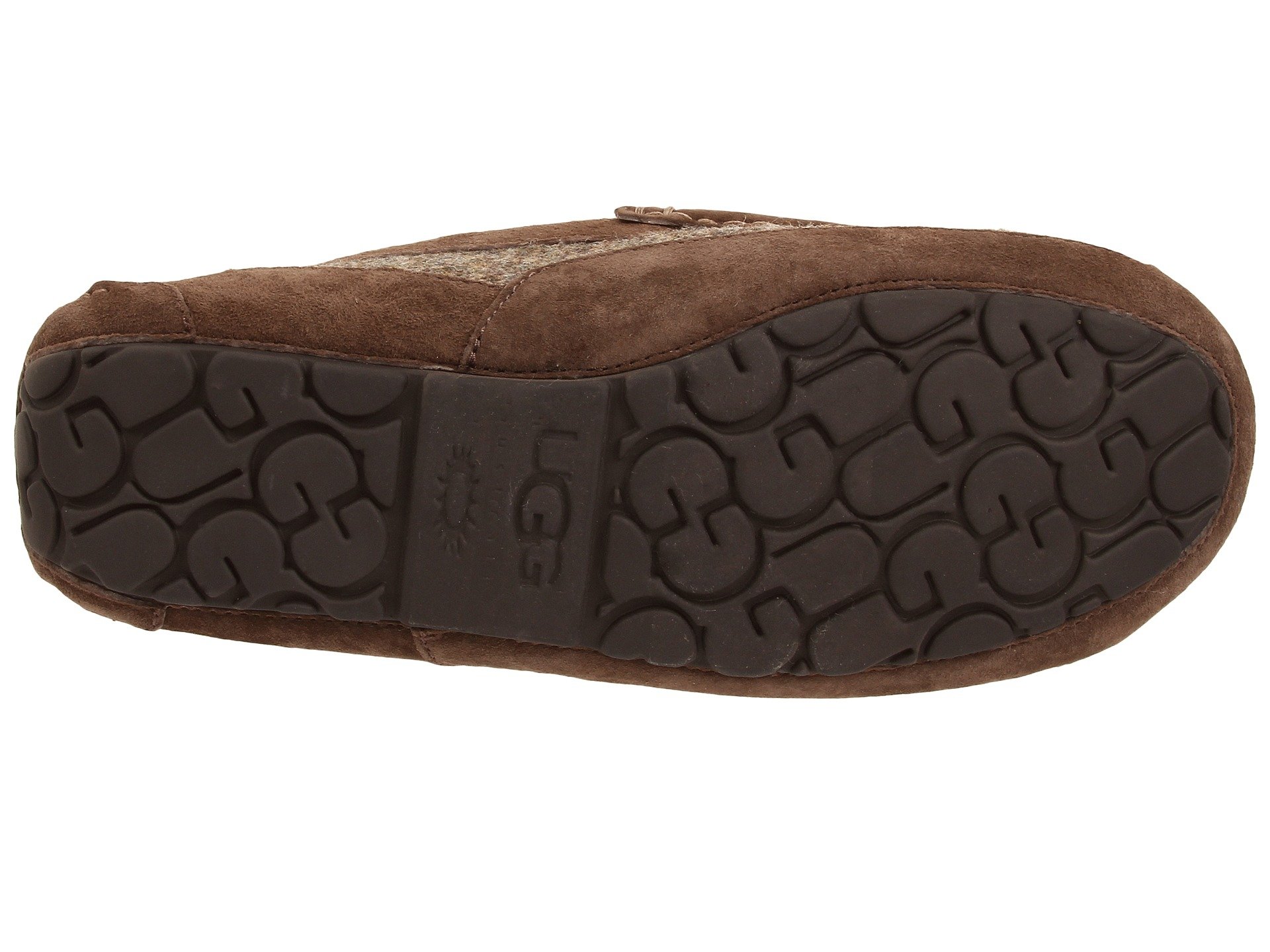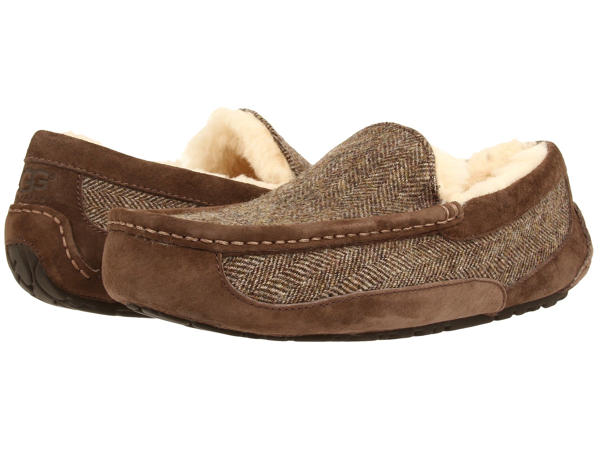 | Product Information SKU: #8361431Have no regret when it comes to splurging on luxurious comfort in the handsome Ascot Tweed from UGG?.Upper is constructed of Woolrich? herringbone tweed and suede in a sophisticated silhouette. Fully lined with UGGpure™.Fit should be snug, but not uncomfortable. Footwear will give a little as fleece footbeds form to each individuals foot.Molded rubber outsole makes this slipper suitable for venturing outdoors.From the UGG? Australia Home/Spa Collection.Imported.Product measurements were taken using size 9, width D - Medium. Please note that measurements may vary by size.Weight of footwear is based on a single item, not a pair.Measurements: Weight: 10.8 oz |