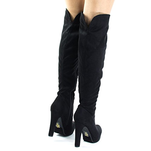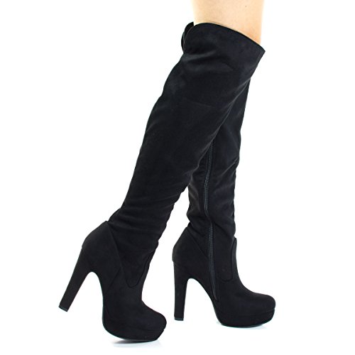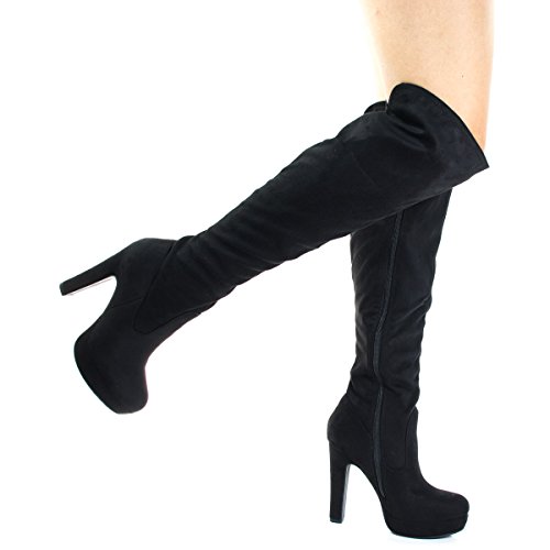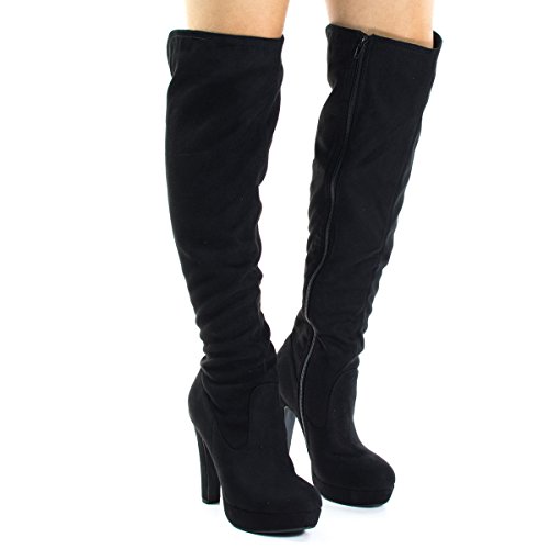Binding : Apparel Product Description Name - Jaclyn Brand: Delicious Colors Available: Black Features: Stand tall and warm with these pull on boots with back slit for easy mobility, super tall high heel, a modest platform, side zipper and slouchy pull on shaft. Occasion: Shoe Type: Tall Boots Shoe Style: Cowboy, Western Inner Lining: synthetic Heel Height In Inches - 5 Heel Style - Stiletto Toe Style - round-toe Platform Height In Inches - 1 Shaft Height In Inches - 19 Circumference Opening - 14 Strap Type - Sole - manmade All Man Made Material unless otherwise stated. Computer/Phone/Table monitors might show color differently because of its quality or calibration, we suggest you look at the photo in at least 3 monitors if you need exact color match of your shoes. 0