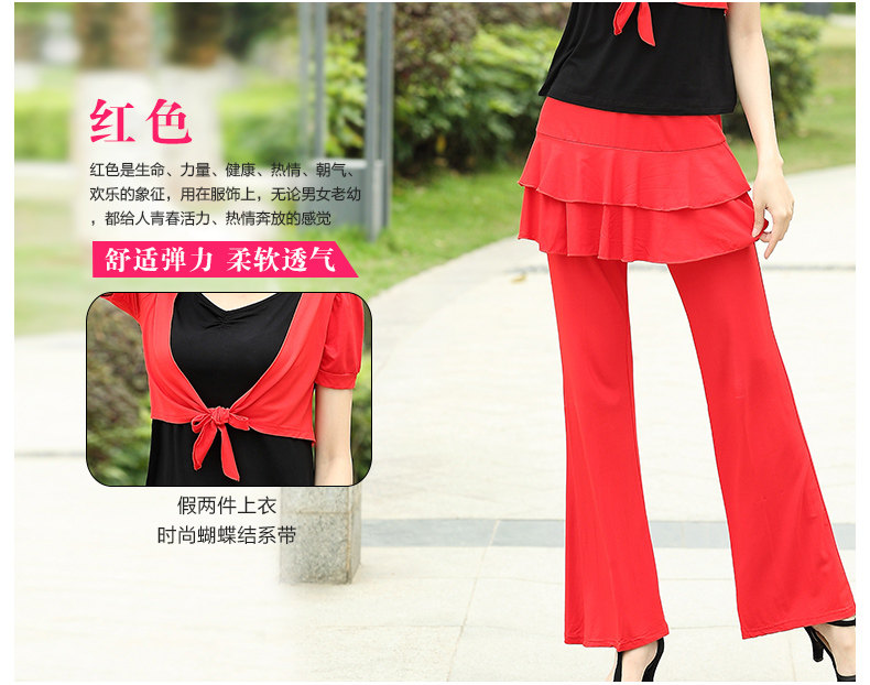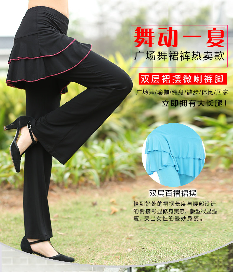 新款双层春夏舞蹈服装广场舞裙裤舞蹈长裤子拉丁舞演出服裤裙