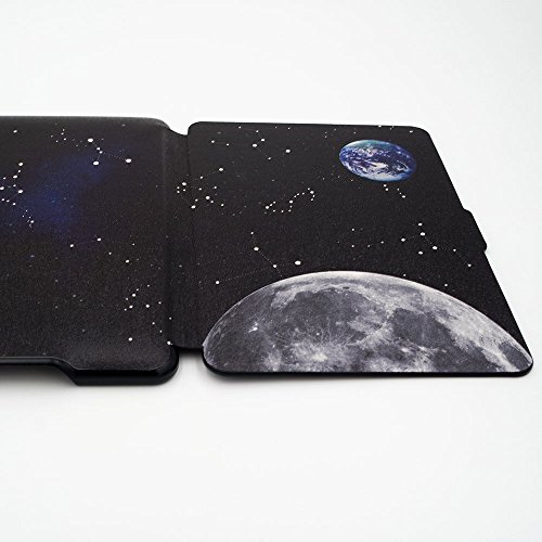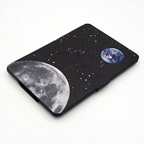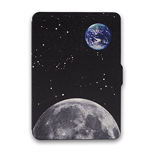 Kandouren Case Cover for Amazon Kindle Paperwhite - Moon & earth Skin,Slim Leather Cover with Autowake(Fit 6 inch 6th generation new Kindle Paperwhite 2013 2015 2016),Black color,Moon & earth
