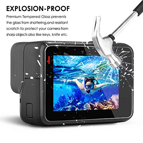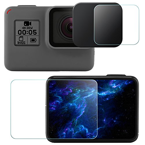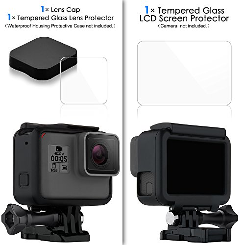 2 Pcs SCREEN PROTECTORS: Specifically designed for GoPro Hero 5 Black Sport Camera, both screen and lens, made of tempered glass of 0.3mm thickness, which can effectively protect the screen and lens from scratches.