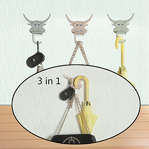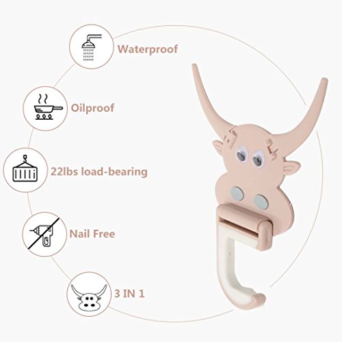 Self-Adhesive Wall Hooks, Ofargo Sticky Plastic Cartoon Mop/Broom Holder, Strong Towel Clothing Kitchen Hangers, Bathroom Office Grippers for Hanging Coats Clothes Key with Wall Mounted (Pack of 3)