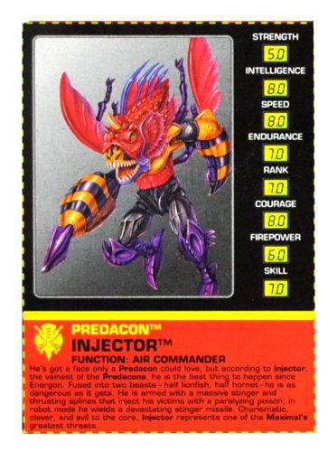 -. Feature : Includes: Evil Predacon Air Commander INJECTOR with Missile Launcher and 1 Missile (Beast Mode: Lionfish/Hornet) / Figure measured approximately 7 inch tall / Produced in year 1997 / For age 5 and up.