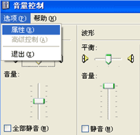 功能特点: {免费下载KTV软件,http://www.51mike.com/}歌库两万首歌等待你 1) 设计用于QQ,MSN,Skype电脑聊天,特别适用意网上练歌. 2) 完美的表面喷皮工艺处理技术. 3) 3.5双声道插头,全指向性,抗噪声,适合任何电脑机型. 4) 配有结构简便的话筒咪座, 微型管体一体化设计技术,方便不同的使用需求. 连接电脑方便简单,不用安装任何驱动程序 1.首先请您检查 麦克风和扬声器的接口,正确接入PC机相应的插孔。 (如果是USB耳麦,只需接好USB接口即可) 2.双击电脑右下角的小喇叭图标打开音量控制 点击菜单的 选项->属性,打开对话框 如QQ聊天无声音,请参考下面进行设置下
