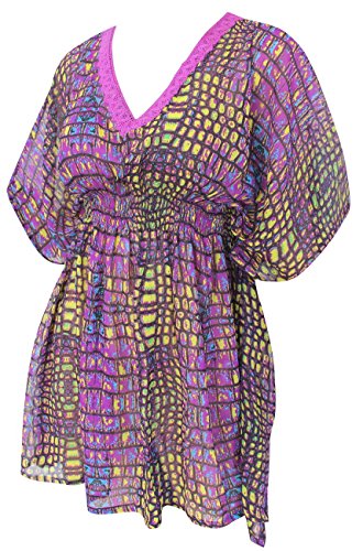 -. Title : La Leela Block Repeat Lightweight Chiffon Beach Coverup Caftan Dress Women Tunic