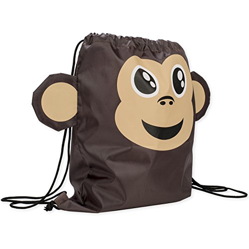 Cute Monkey Head 13.5 x 15 inch Fabric Novelty Drawstring Shoulder Backpack