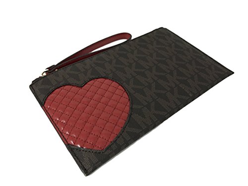 -. Title : Giftable PVC Signature JST LG Heart Zip Clutch in Brown/Red