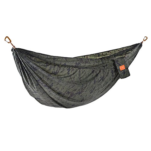Verde Camo! Comfortably Supporting Up To 400 lbs: This double hammock fits 2 persons, You can lay down with your friend or loved one and you will still have plenty of room. New 40D Diamond ripstop nylon fabric the hammocks provide relaxing support up to 400 lbs.