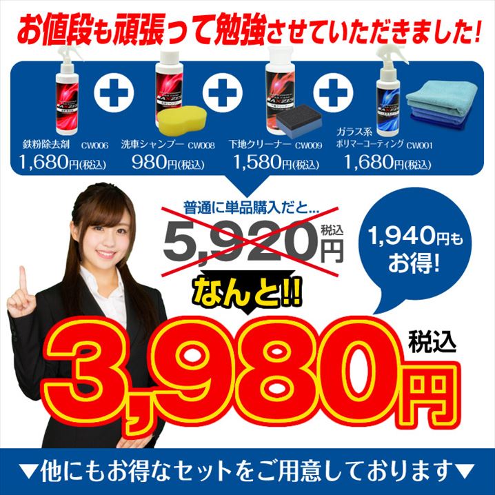 ●コーティングを初めて行う方でも簡単に作業ができるように、3つの下地処理剤とコーティング剤をセットにしました。