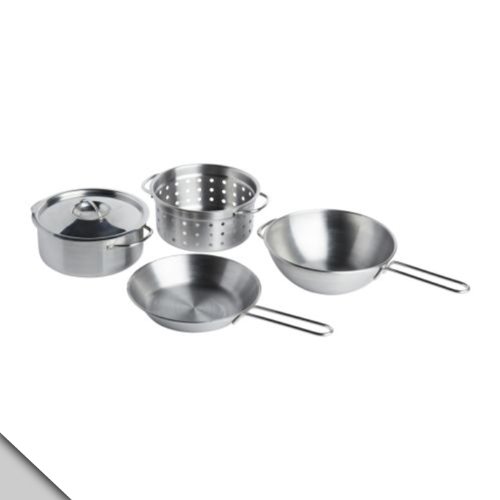 IKEA - DUKTIG 4-PIECE CHILDREN ROLE PLAY COOKWARE SET, STAINLESS STEEL COLOR