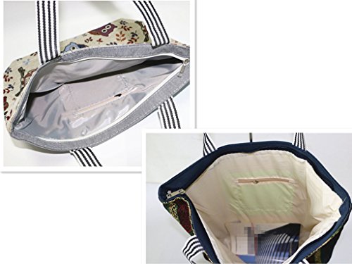leyoubei 100% Natural cotton canvas handbag with zipper Storage & Organization (2 packs) perfect beach, grocery shopping, craft items - thick, durable, washable (Owls and elephants)