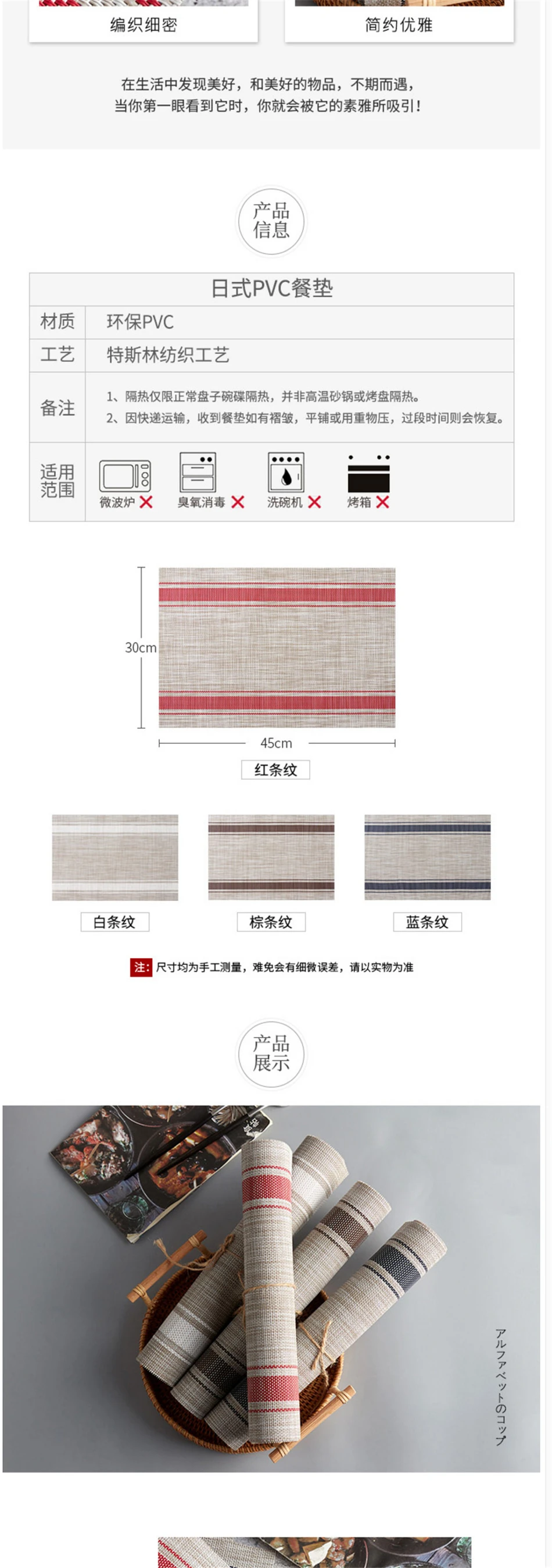 Fearture 1:Placemat PVC