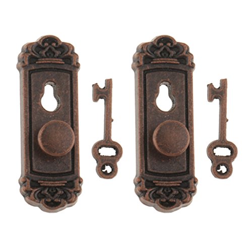 -. Title : MonkeyJack 2pcs 1:12 Vintage Metal Door Knob Plate Key Set Dollhouse Miniature Handle