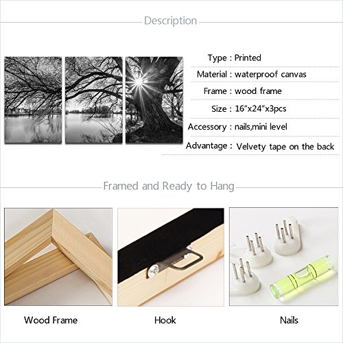 Waterproof canvas,professionally printed with fade resistant,premium inks,Black and White landscape picture print for wall decor.