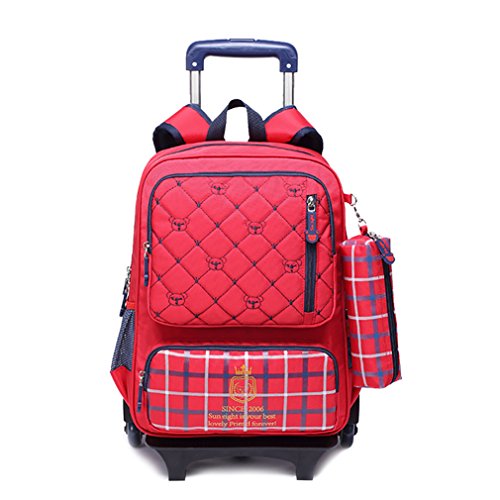 -. Feature : Size:L*W*D(15.7X12.2X5.5inches) with 6 wheels and reflective stripe, protect kids on night. / Multi-choice for kids as a rolling suitcase,backpack or handbag;simply remove and install the rolling platform,help kids to reduce load from large books weight and with a sole pencil case; / Capacity:1 main pocket,3 exterior zipper pockets with a sole pencil case,2 mesh pockets on both sides. / Special reflective straps degisn to protect kids on night,good quality of Nylon,tear resistant and water resistant,designed breathable back and shoulder Strap are made of ventilate material. / Equipped with 6 durable mold wheels with beautiful zipper designed,which can make it easy to adapt to a variety of terrain.(shipping time is only 5-10 days)