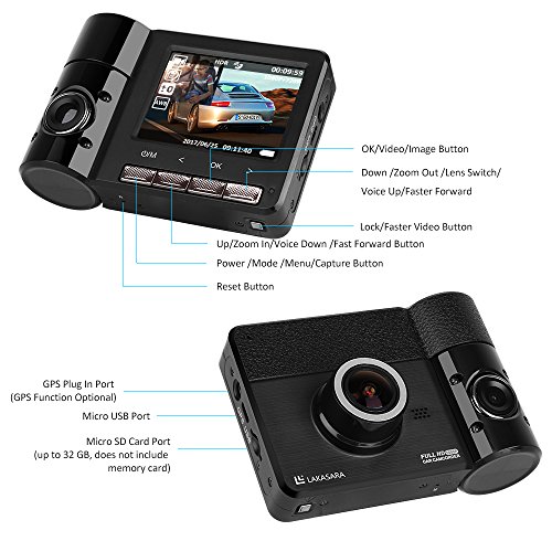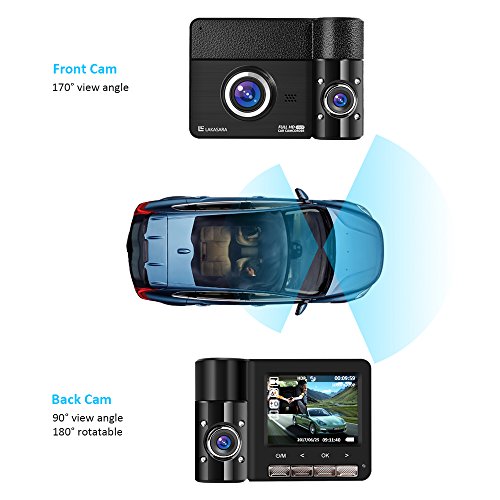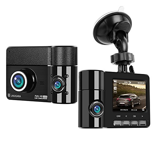 Dash Cam, LAKASARA Car Dashboard Camera Recorder Full HD 1080p 30FPS 170 Degree Ultra Wide Angle Dual Lens Car DVR Digital Video Camcorder with 2.31'' LCD, G-Sensor, HDR, Loop Recording