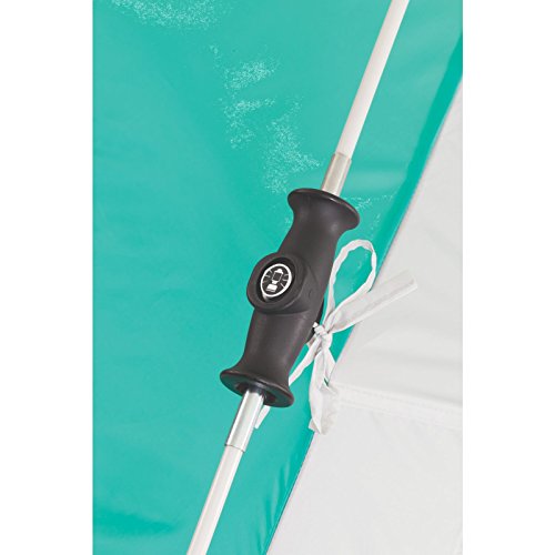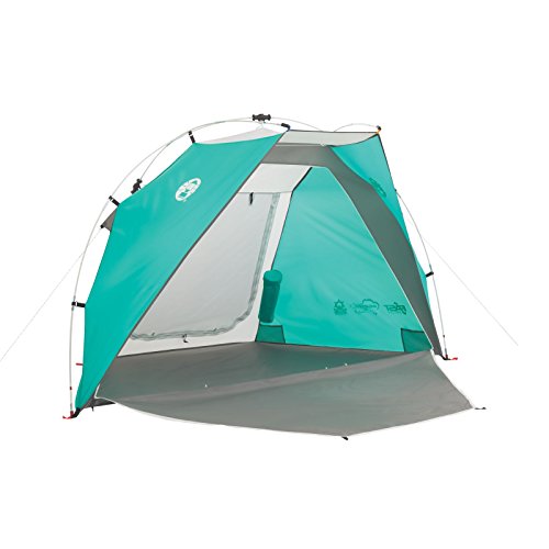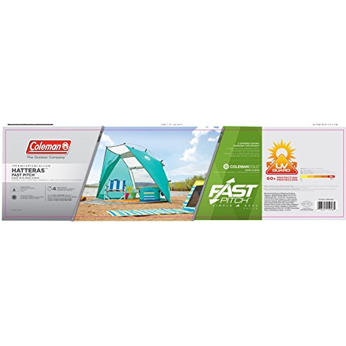 -. Feature : UV Guard material provides 50+ UPF protection from the sun's dangerous rays / Coleman Cold - built-in 3-can drink sleeve lets you keep sealed drinks cold and close at hand / Up to 60% faster setup than a comparable standard Coleman shade with conventional setup / Fast Pitch system with pre-attached, color-coded poles and hub, fast fit feet, and snag-free Insta-Clip suspension / Zippered door and window for privacy when you need it
