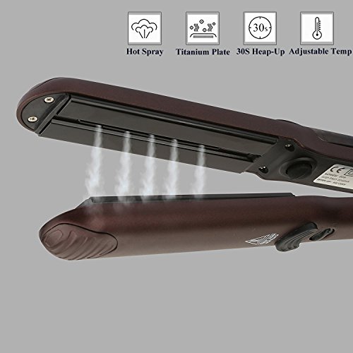 Professional Flat Iron with Steam and Nano Titanium Plate, VITI Spray Hair Straightener with Long Floating Plate, Temperature Control, and Auto Shut-off