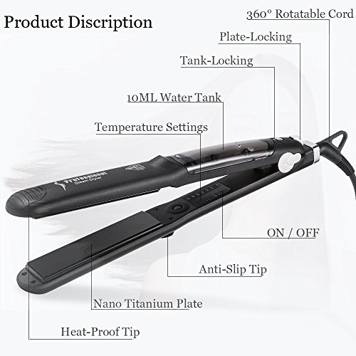 Efficient Straightening - 4 x 1.2 inchs ultra wide heating plate makes it easy to process more hair in each round and the steam makes it possible to straighten hair without extra step to wet the hair.