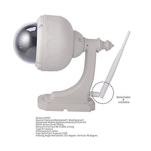 -. Feature : ➤Wide View IP Camera : 720P High-definition, 355° horizontal & 90° vertical Auto Cruise rotation range create a complete 360° coverage. Advanced night vision with 12 infrared IR LED beads / ➤Security Cameras Supported Operating Systems :Windows 7,Windows XP, IOS, Android,Intelligent Motion dectection, Massage alert, FTP upload as well as Mobile and Web Apps,PC/APP to control multi-cameras / ➤Built-in IR-CUT, no color no cast. Extend the viewing distance to 10 meters in pitch dark with no light pollution, so your baby or pet will not be disturbed by LED glare / ➤P2P: Easier to set up WiFi and viewing in Mobile,Support up to 32G TF card memory, 24-hour recording. 4 Channel view, support up to 10 online users viewing viewing on line at the same time. / ➤Convenient to know everything in home from office and keep pet in your eye. allows you to customize your settings according to your preferences: defined activity regions, customize alert schedules, and more