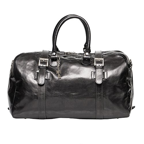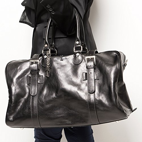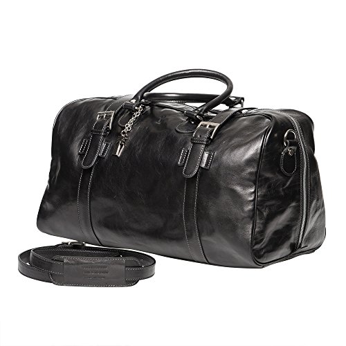 Product Description The Daniel leather travel bag by Marlafiji can be used as an overnight bag or travel bag, beautiful Italian leather make this a very luxurious bag to travel or take to the gym it has a spacious main compartment ,inner side pocket, fully lined with sturdy leather handles this bag will last for a life time and the older it becomes the better it looks. - Dimensions L 51 cm x H 31 cm x W 20 cm - 100% Genuine Leather - Gold metal hardware - Fully lined - One main compartment - Long adjustable shoulder straps - Zip up closure - Includes dust bag - Made in Italy 0