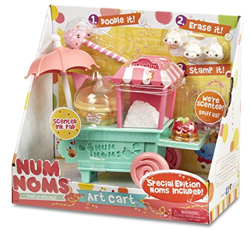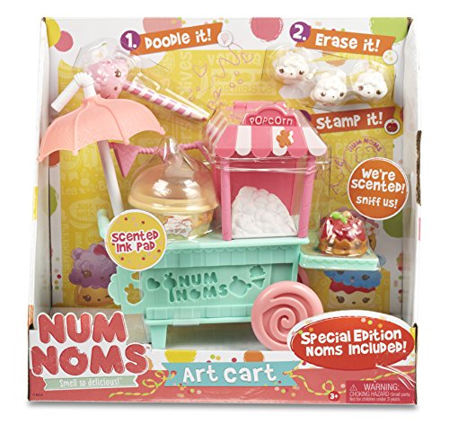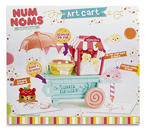 Express your creativity with the Num Noms Art Cart! Doodle It! Erase It! Stamp It! Stationary is scented for tons of delicious fun! Includes 4 scented eraser Noms and 1 scented stamper Nom.