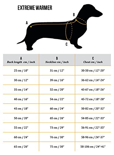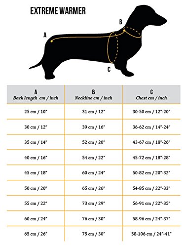 -. Feature : The Extreme Warmer will keep your dog warm in demanding conditions. It is also particularly well suited to outdoor activities in winter, when long-term exposure to cold cannot be avoided / The unique foil lining material of the extreme warmer reflects the dog's Heat and thus stimulates its blood circulation efficiently unlike a regular winter jacket / Besides a high collar, the jacket has a warming tricot Hood that can be lifted to protect the dog's ears and head / The jacket protects the most important muscle groups for the dog's Heat production as well as its neck and Chest / With adjustable back Length, collar and waist, and a protective rear hem, this highly technical outfit is suitable for a range of applications