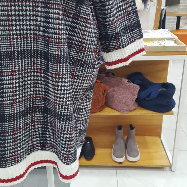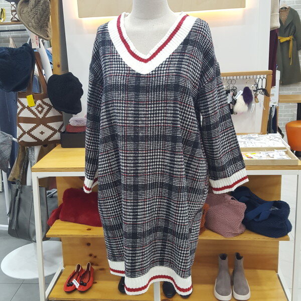 브이넥과 시보리가 포인트인 니트원피스로 레깅스와 코디하여 코트나 패딩에 매치하기좋은 아이템으로 추천해요~^^